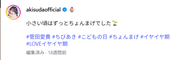 菅田愛貴さんのインスタグラムに幼少の頃の写真がありました。