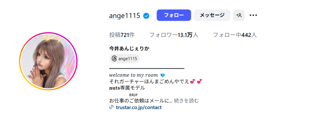 • 職業:モデル・タレント・インフルエンサー