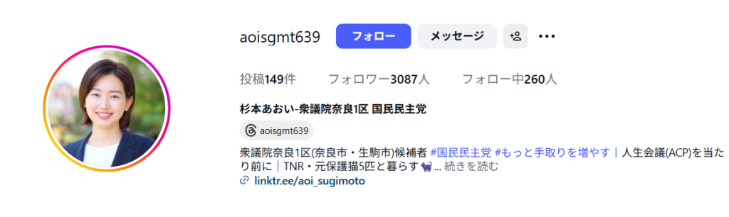 杉本あおいさんは、国民民主党の政治家です。