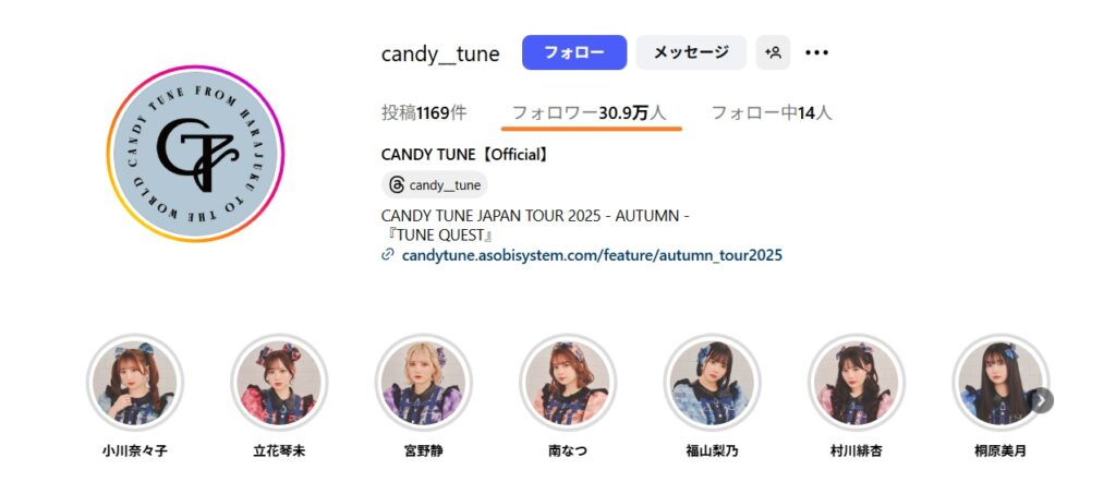 CANDY TUNEは人気がないと言われていましたが、インスタグラムのフォロワーは30万人越えの超人気グループでした。