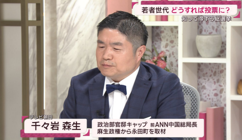 千々岩森生さんは、テレビ朝日の政治部所属の記者です。