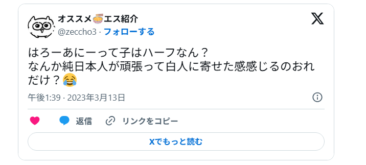 はろーあにーさんの見た目に対して、「ハーフなの?」と気になる方も多いようです。