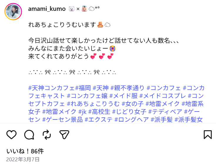 橋本姫奈さんは、福岡時代は、コンセプトカフェ『れあちょこりうむ』に勤務していたようです。
