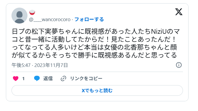 北香那さんは、松下実夢さんに似ているという声もありました。