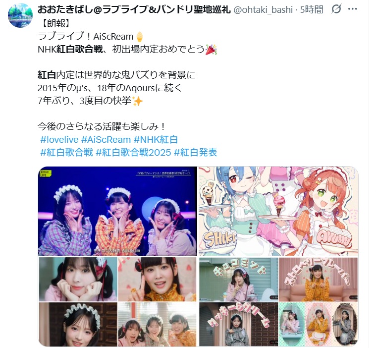 アーティストの中では、AiScReamの初出場内定のニュースがありました!