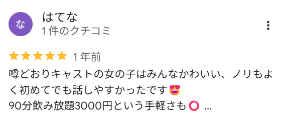 口コミによると、キャストが可愛いということで人気があるお店のようですね!