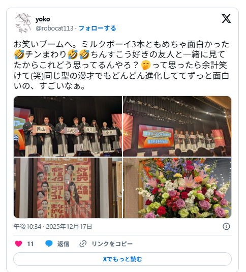 実際にイベントに行った人が、ミルクボーイの漫才がずっと進化しててずっと面白いのすごいと絶賛していました!