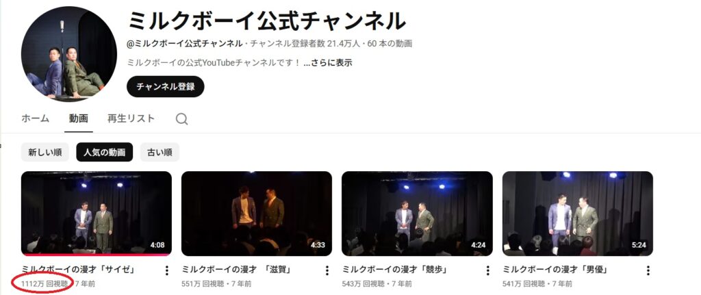 ミルクボーイはYoutubeにミルクボーイ公式チャンネルを持っています。