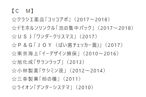 公式サイトの情報によると、最後にCM出演したのが2018年となっていました。