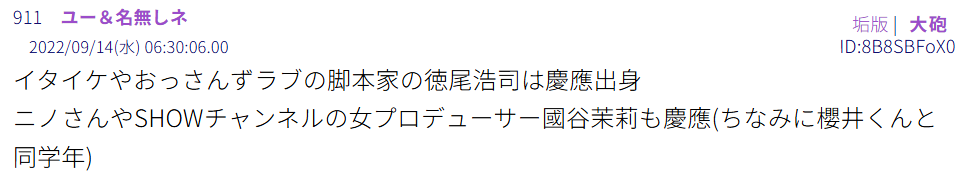 SNSでは、「慶應義塾大学 総合政策学部を卒業していて、嵐の櫻井くんと同学年」と噂されています。