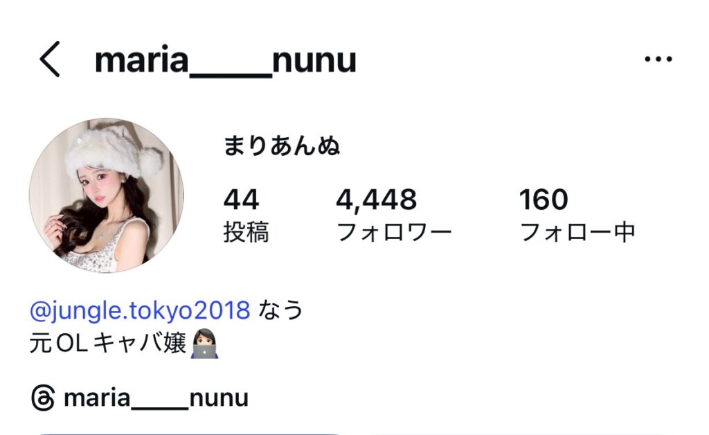 キャバ嬢になったのは、2025年からのようですが、SNSのフォロワーは、すでに4000人を超えています。