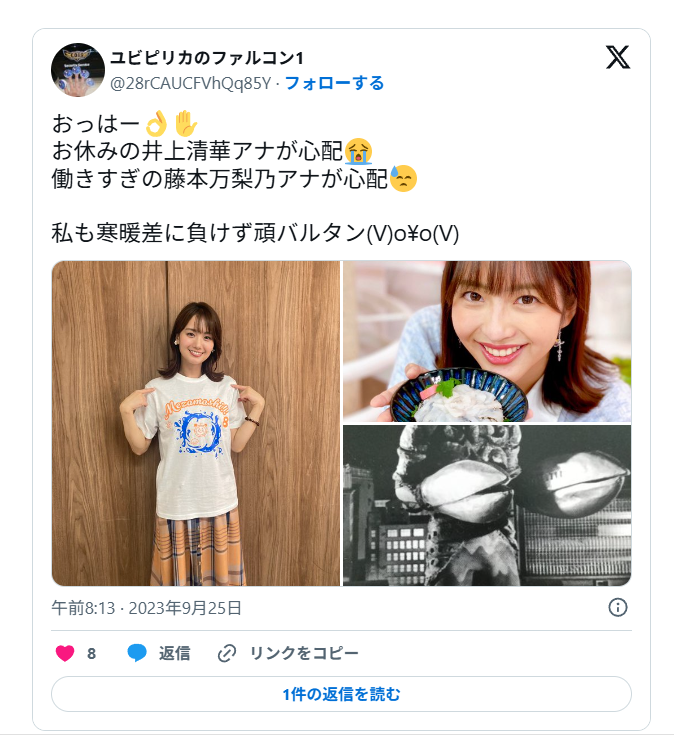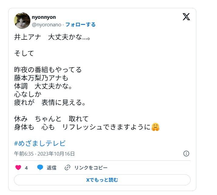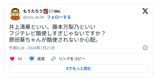 藤本万梨乃さんはキャラクターも人気で、他番組で重宝されてきただけに働きすぎが心配されていました。