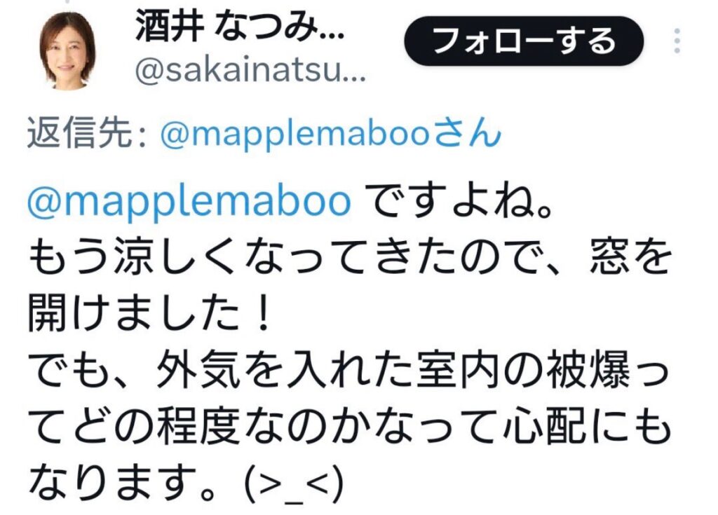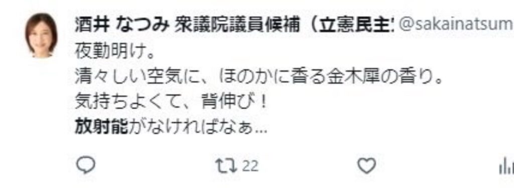 酒井菜摘さんは、過去に自身のXで放射能を心配する内容の投稿をしており、それが黒歴史と言われているようです。