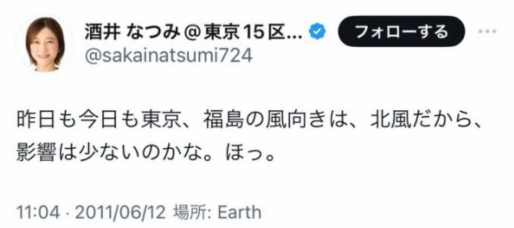 東日本大震災後に何度も放射能についての投稿をしており、自分の体調不良を福島のせいにしているのではと、SNSで指摘されていたようです。