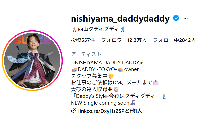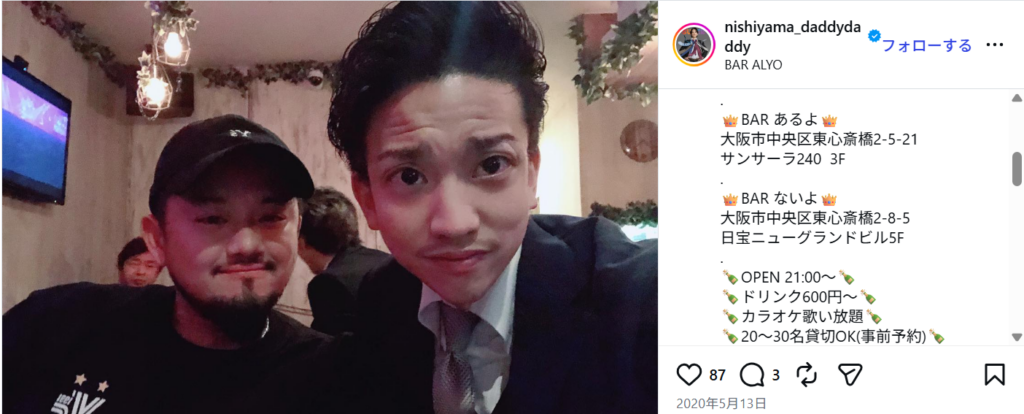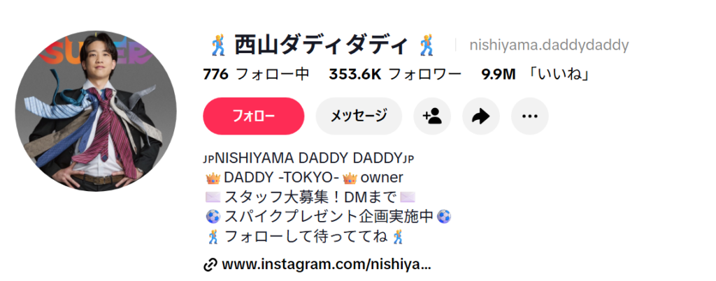 西山ダディダディさんは、元バー店長で、インフルエンサーです。