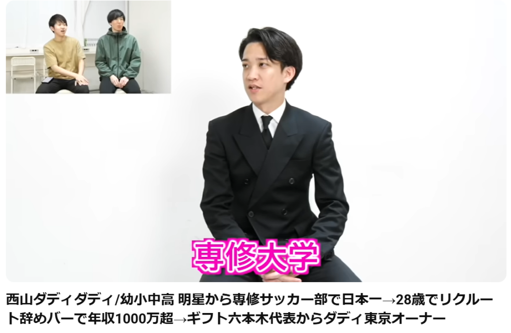 西山ダディダディさんは、専修大学を卒業しているようです。