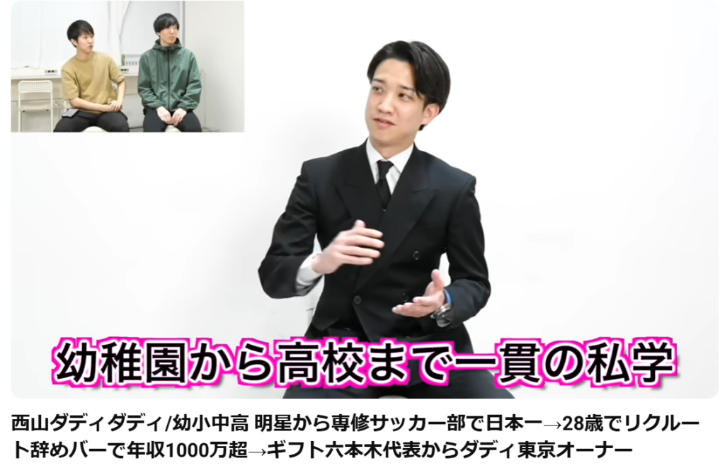 西山ダディダディさんは、元バー店長で、インフルエンサーです。
