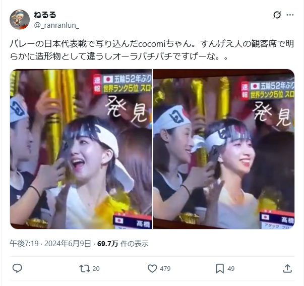そして日本代表戦ではテレビ中継にCocomiさんが映ったことで話題になっていました。
