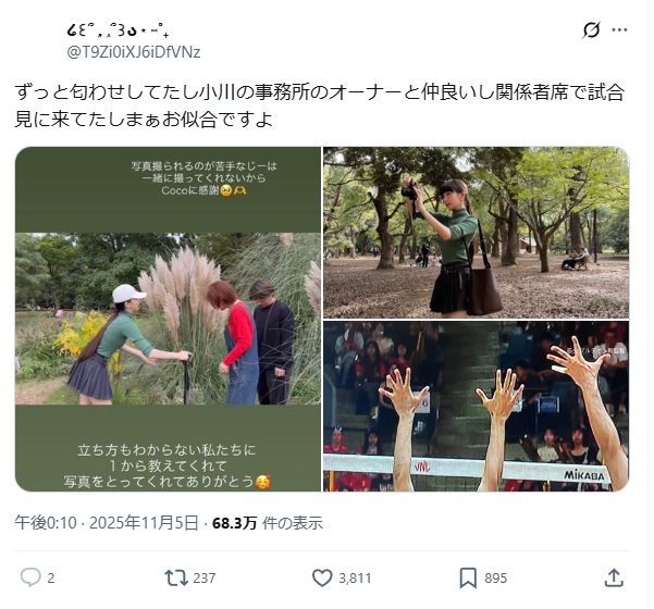 2025年11月5日、週刊文春がバレーボールの小川智大選手とCocomiさんの熱愛を報じました。