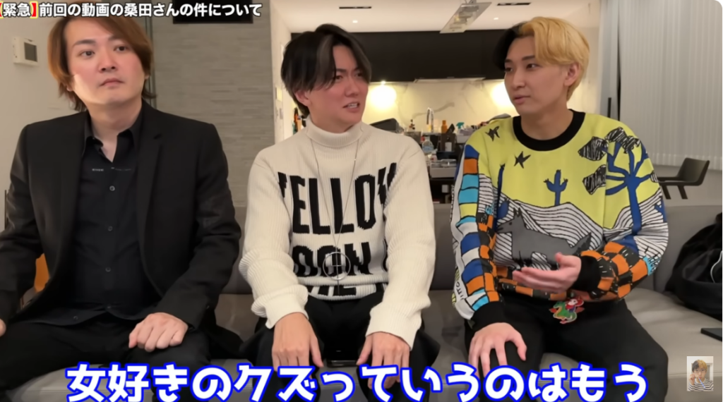 桑田龍征さんは、Youtuberヒカルさんの動画の中で、「女好きであること」を語っていました。