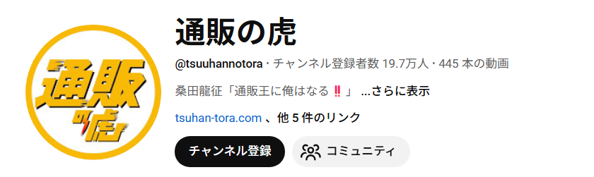 2023年8月からYoutubeチャンネル「通販の虎」を開始し、登録者数は19万人を超えています。