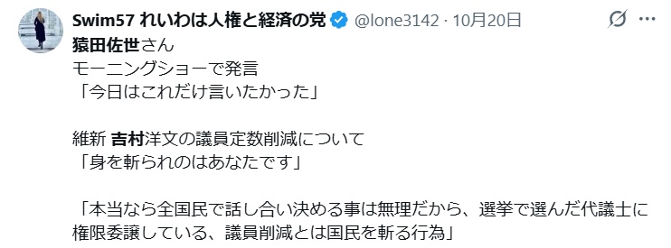 特に、大阪維新の吉村代表による議員数の削減案に対しての発言が注目されています。