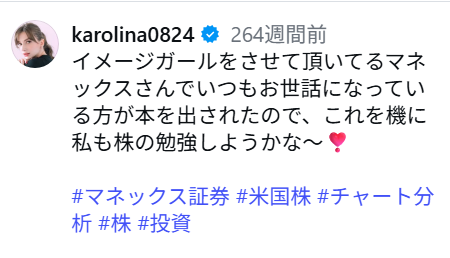 マネックス証券の米国株のイメージガールも務めていました。(現在は降板しています)
