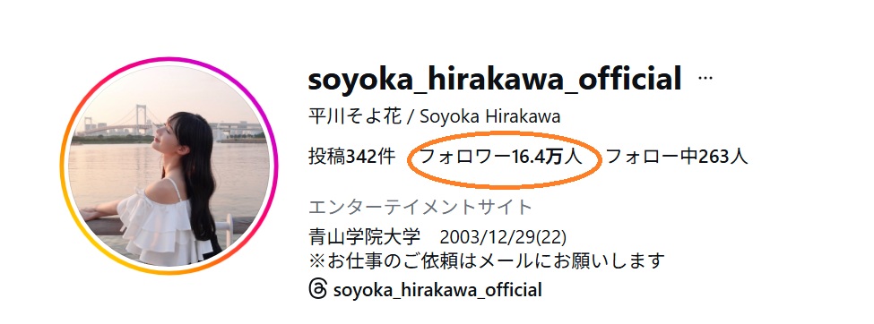 平川そよ花さんは、青山学院在学中の大学生です。