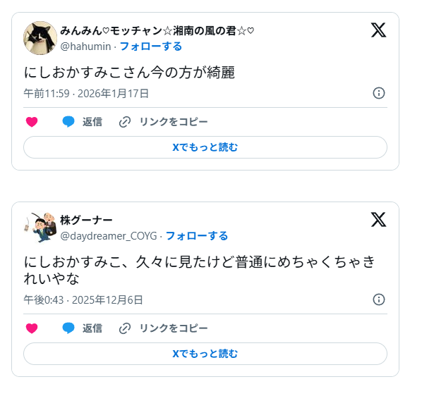 学生時代から現在までのにしおかすみこさんについて振り返りましたが、雰囲気は変わったものの、昔からかわいいことが分かりました!