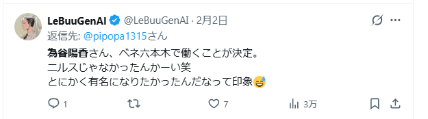 いろいろな意見があるものの、為谷陽香の名前は瞬く間に拡散され、かなり知名度が高まっているようです。
