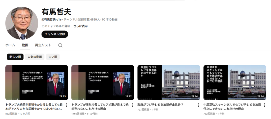 有馬哲夫さんは、2024年に早稲田大学の教授を定年退職し、現在はYouTube・ネット発信や執筆活動を中心に活動しているようです。