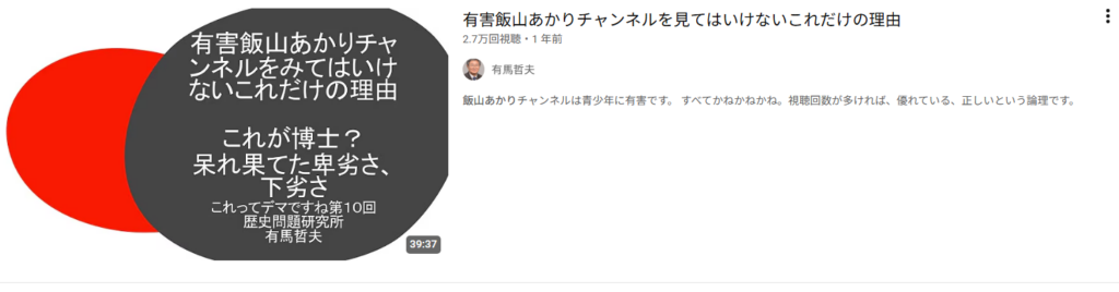Youtubeでも、飯山あかりさんを「有害」と唱えていたみたいですね。