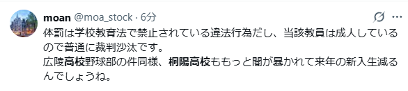 高校教師の体罰に対して、SNSでは賛否の意見が出ています。