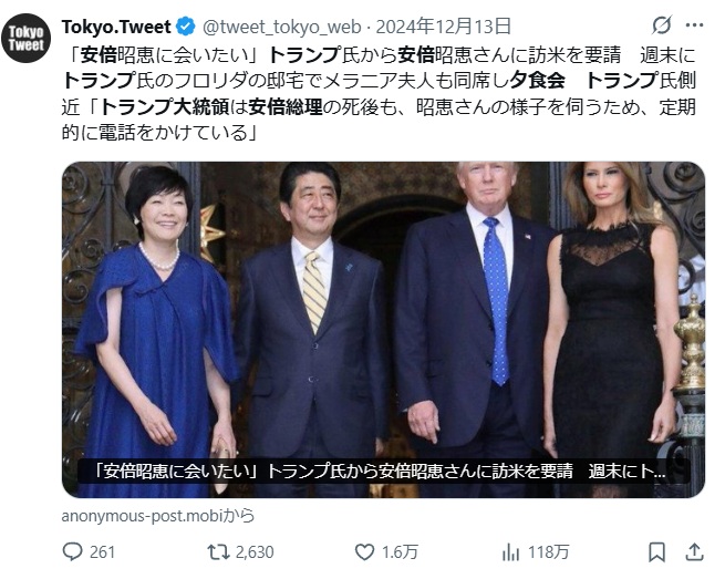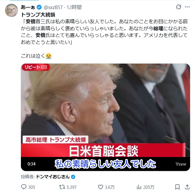 安部元総理は亡くなる前に、トランプ大統領に高市総理について語っておられたようですね。