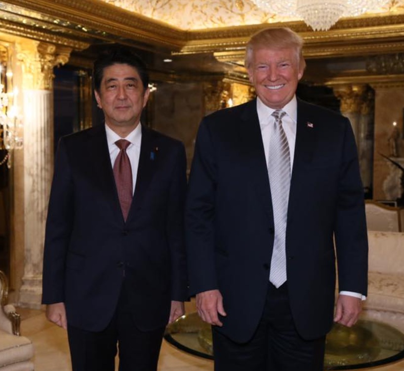 トランプ大統領が初めて大統領選に勝利した直後で、安部元総理が最も早くトランプ大統領に会いに行った首脳と言われています。