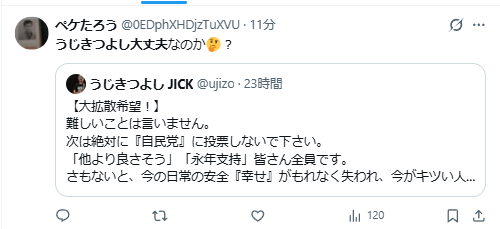 特に、「自民党に票を入れないでください」などの突然のツイートに心配するファンも多いようです。