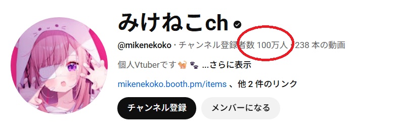 みけねこさんは、登録者数100万人を超える人気VTuberです。