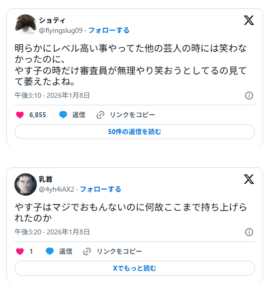 やす子さんは良い人キャラが全面に押し出されていたので、視聴者はギャップを感じてしまったのかもしれません。