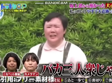 坂上忍から預かっていた犬が脱走してしまい、やす子さんがパニックになり、スタッフに「おまえら、バカ三人衆じゃん」と暴言を吐くシーンがありました。