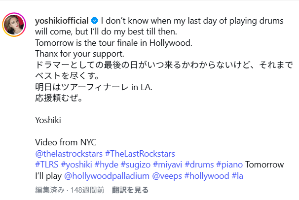 Yoshikiさんのインスタグラムには自宅で体を鍛える様子もありました。